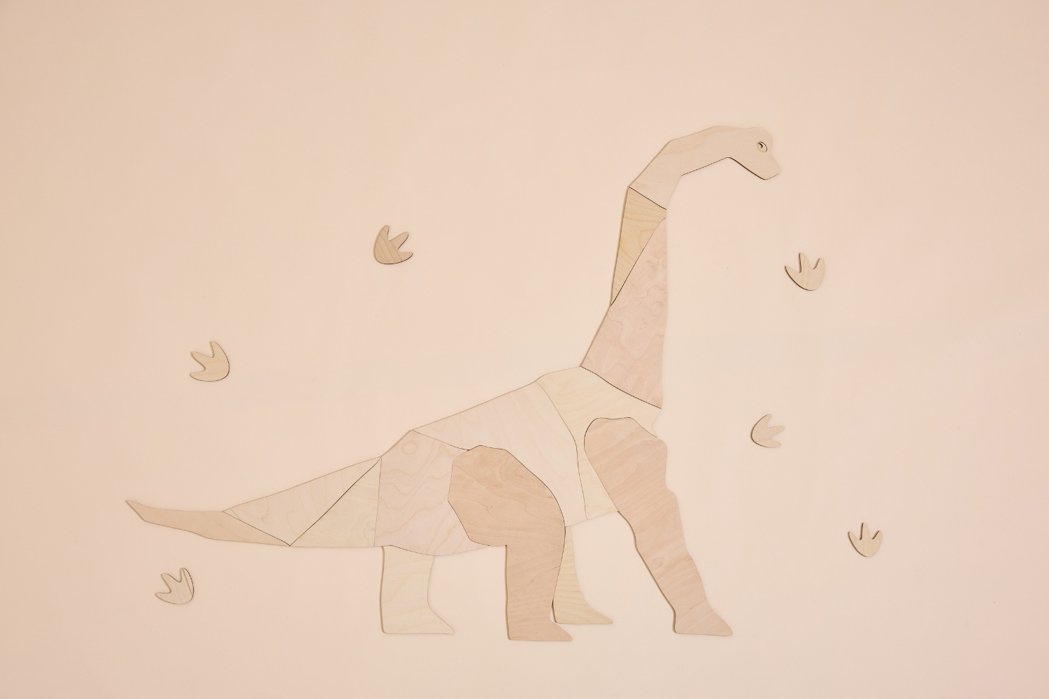 Dinosauro-origami é inteiramente feito de contraplacado de madeira dura. As peças são como um quebra-cabeça, muito divertido! Cada criança pode construi-lo.