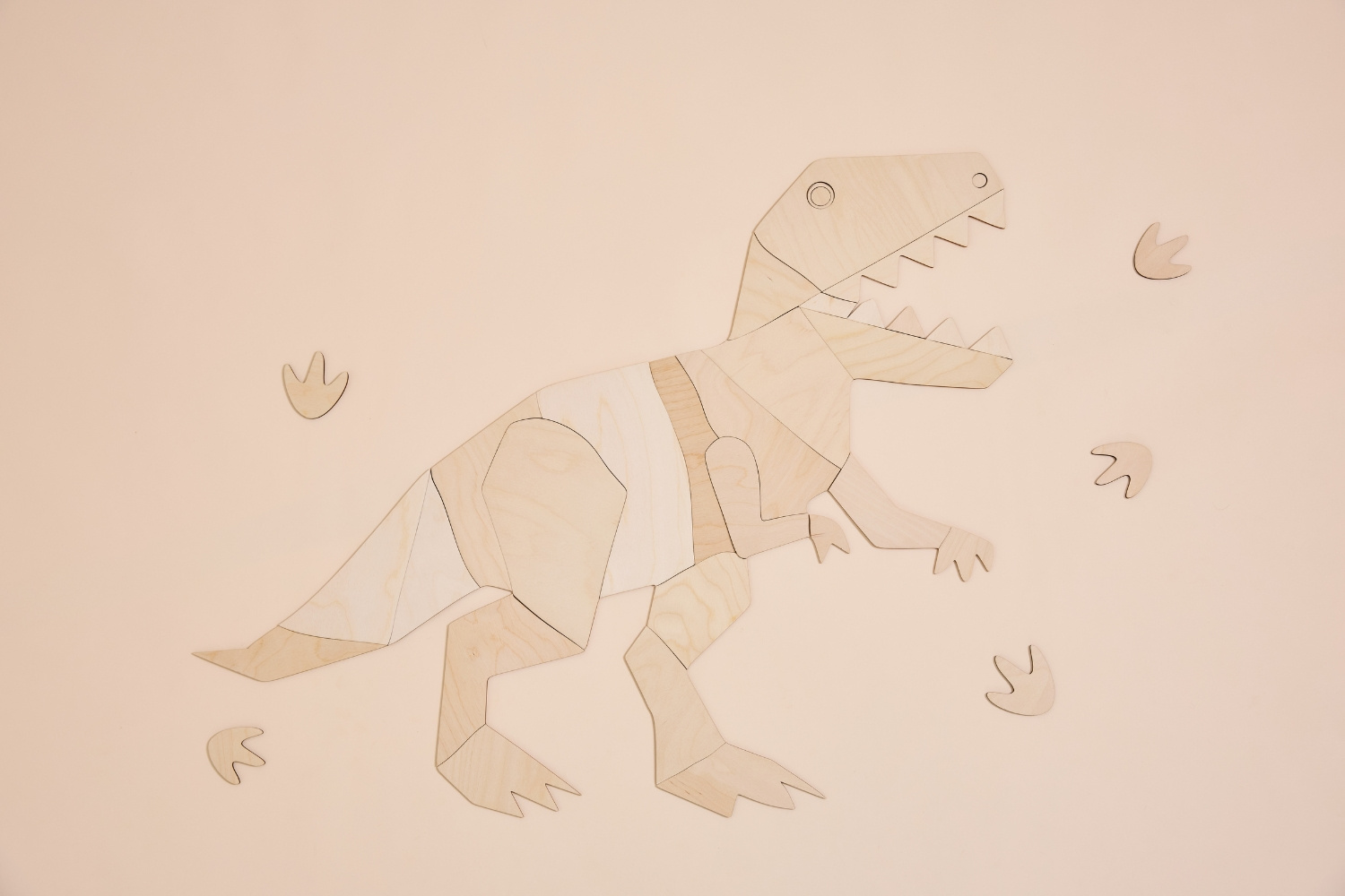 Dinosauro-origami é inteiramente feito de contraplacado de madeira dura. As peças são como um quebra-cabeça, muito divertido! Cada criança pode construi-lo.