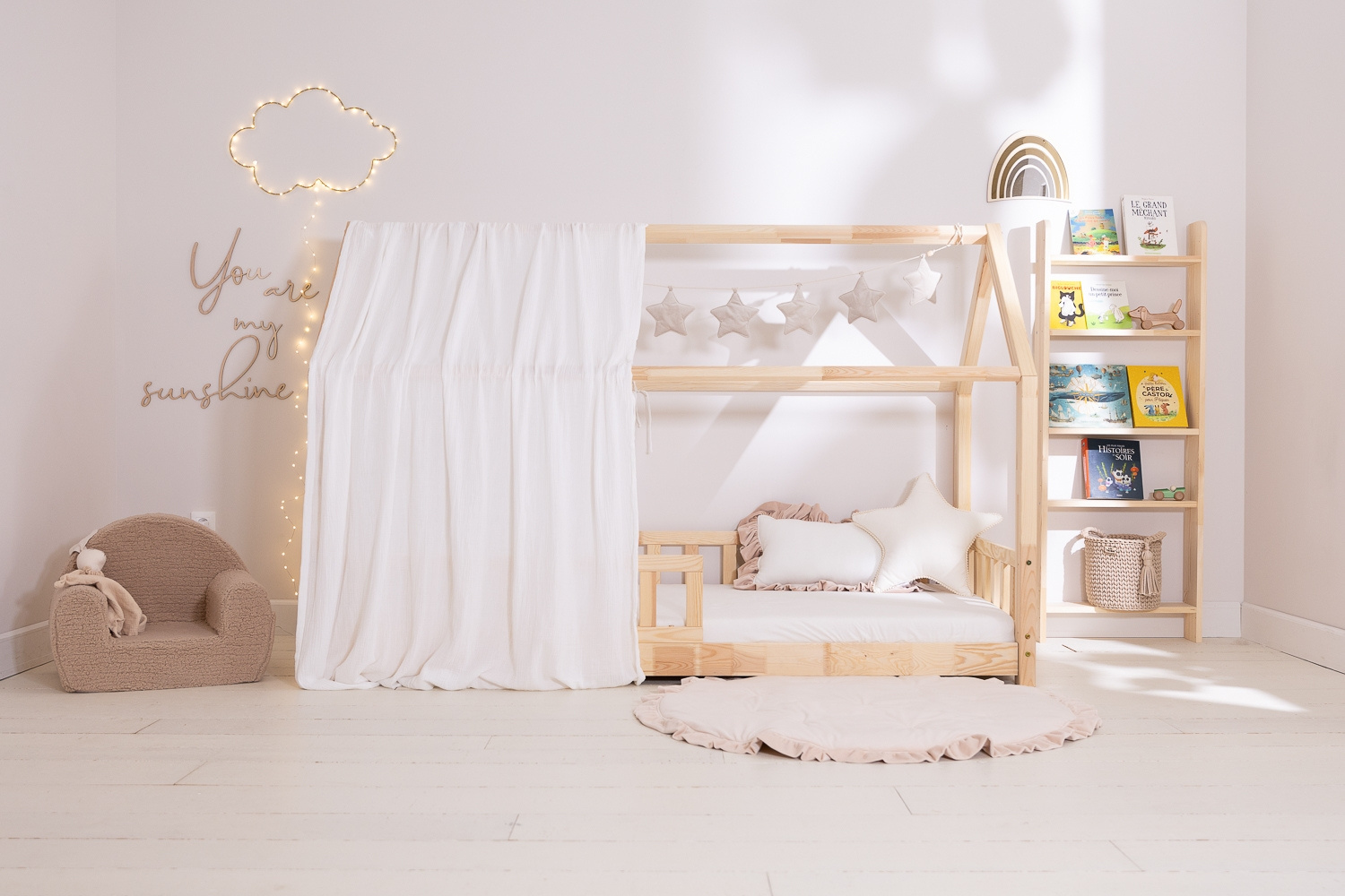 A musselina de algodão oferece uma sensação suave e leve, ideal para criar um ambiente acolhedor que tranquilizará seu filho. Ele poderá passar horas lendo, imaginando histórias ou brincando em sua cama, sentindo-se envolvido em seu próprio universo mágico.