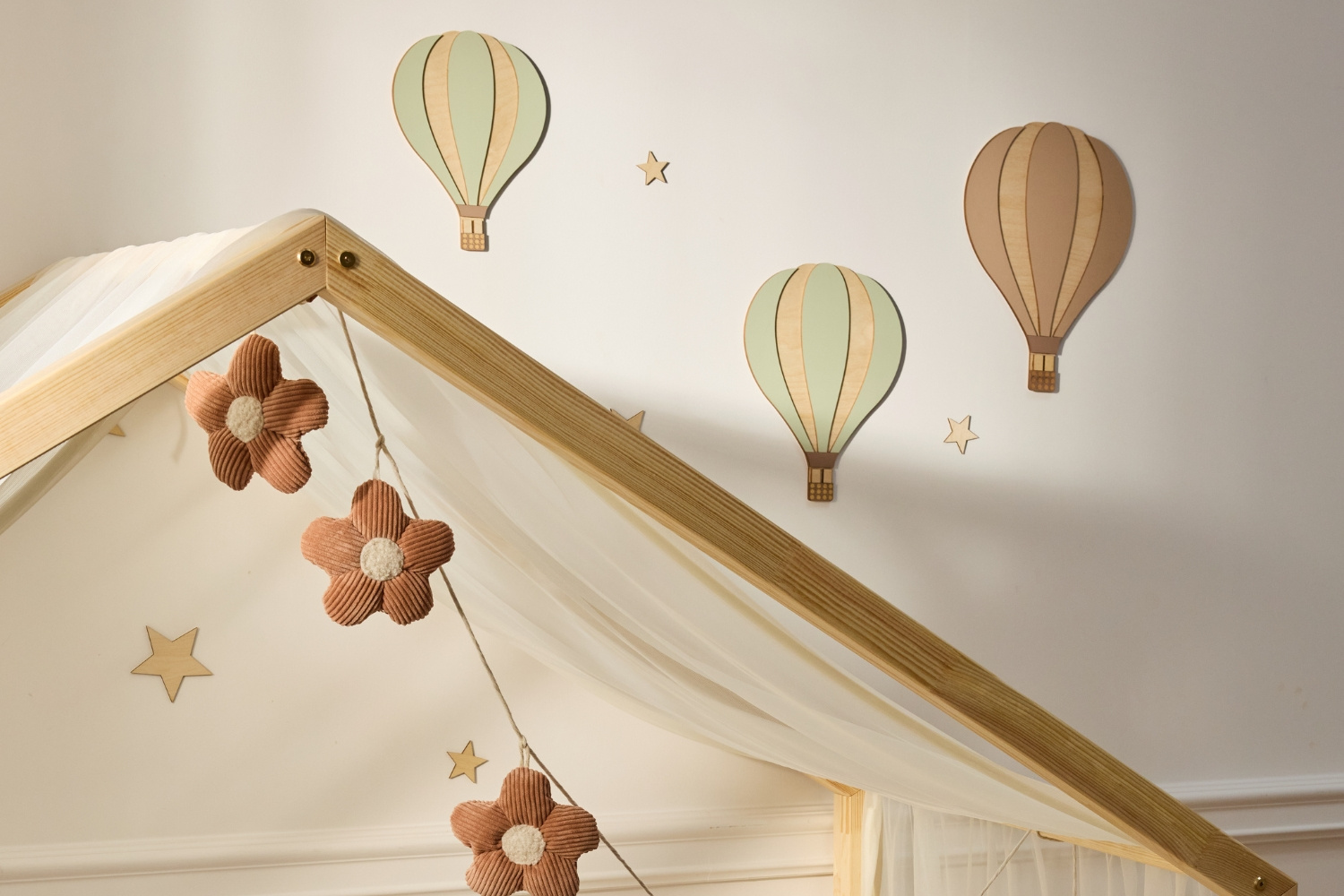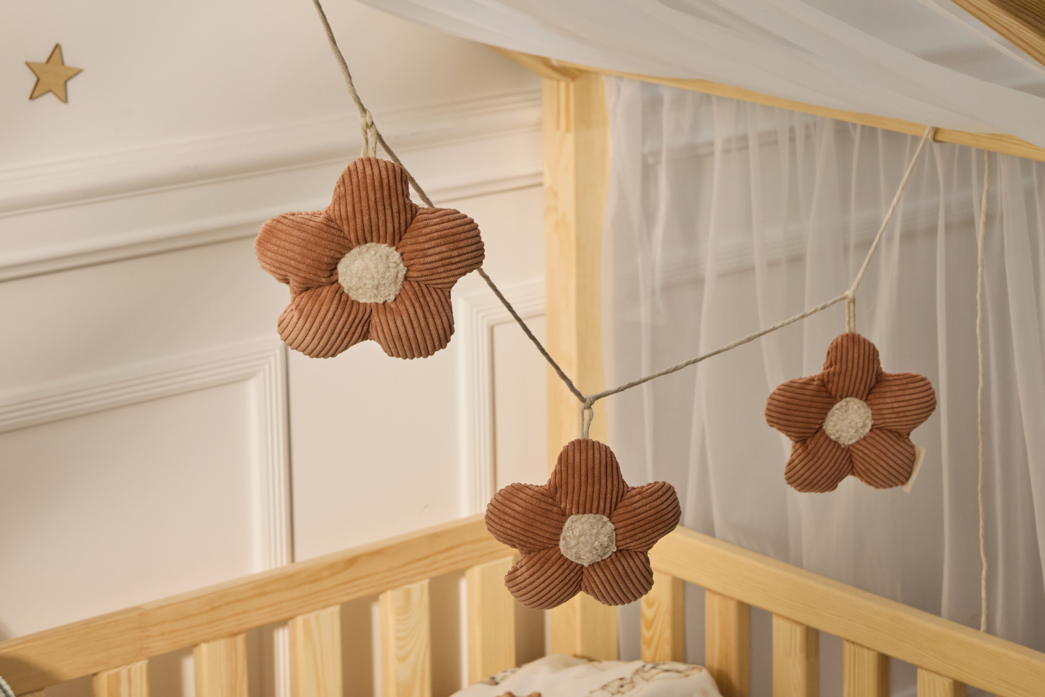 Ideal para pendurar acima do berço, ao longo de um dossel, na parede ou como detalhe decorativo em ocasiões especiais como aniversários ou chá de bebê.