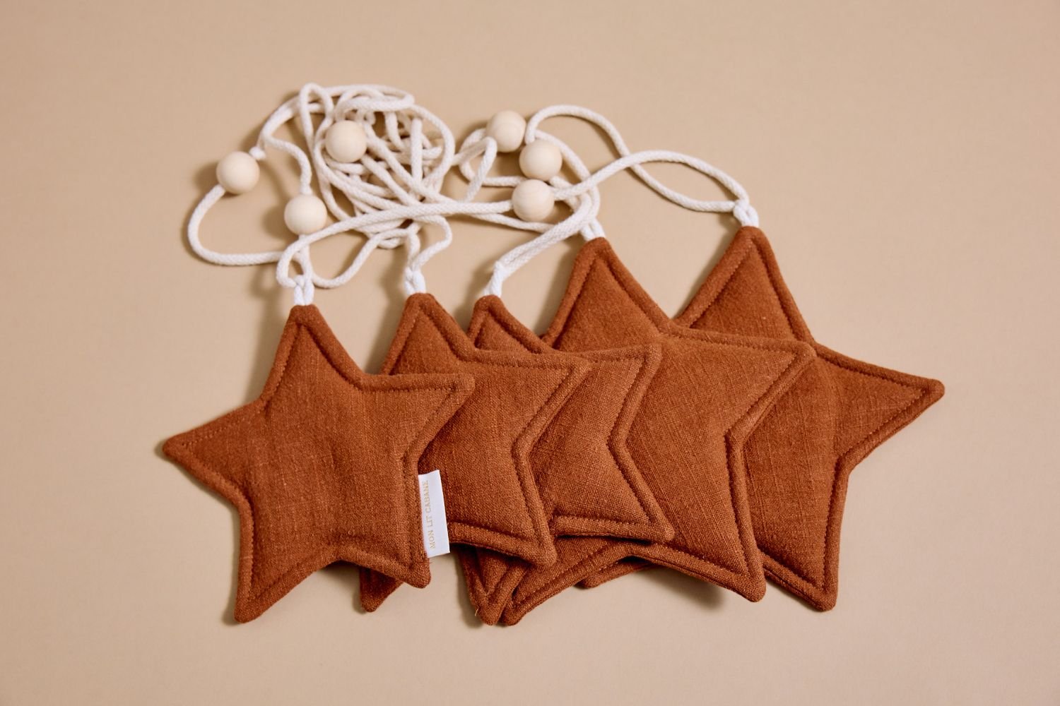 Esta guirlanda é composta por 5 estrelas em cores delicadas, todas suspensas num fio de algodão.