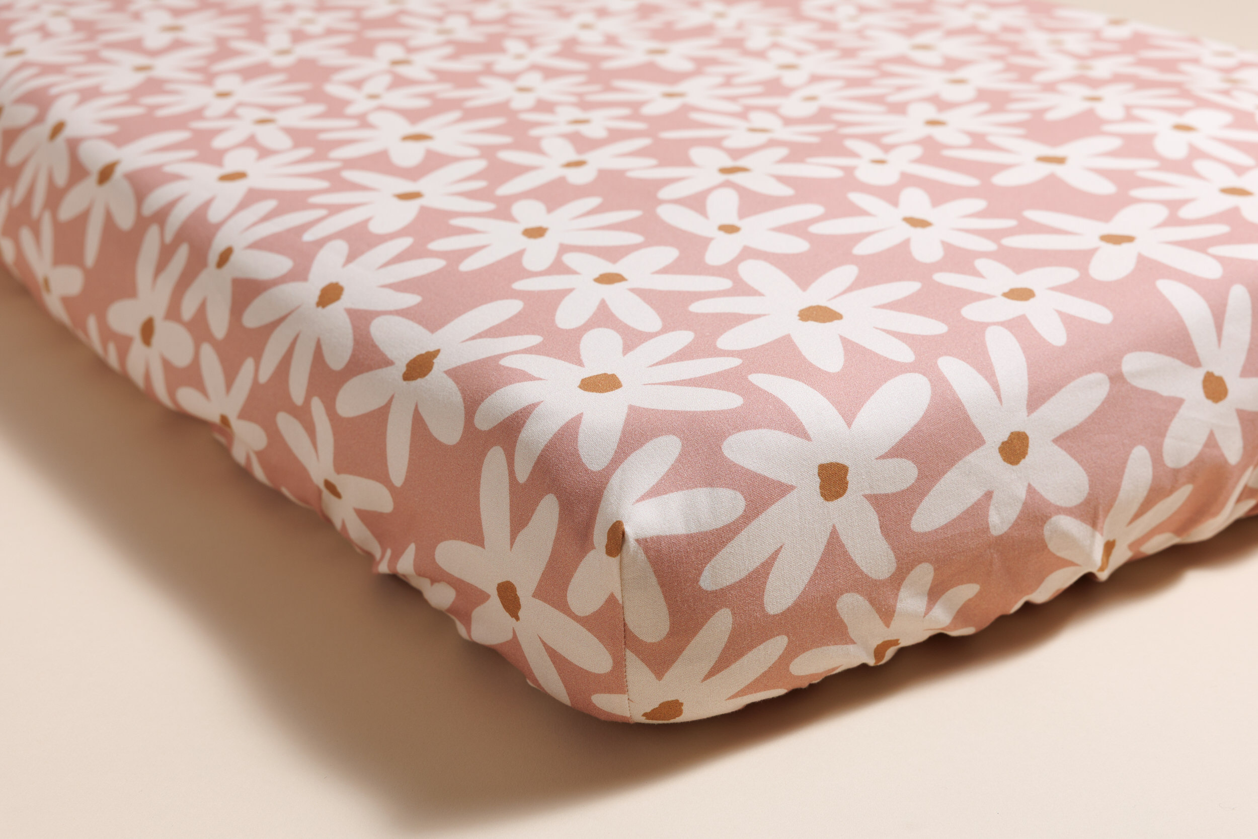 O nosso lençol de algodão feito de material da mais alta qualidade com uma estampa digital, sobre uma faixa elástica.