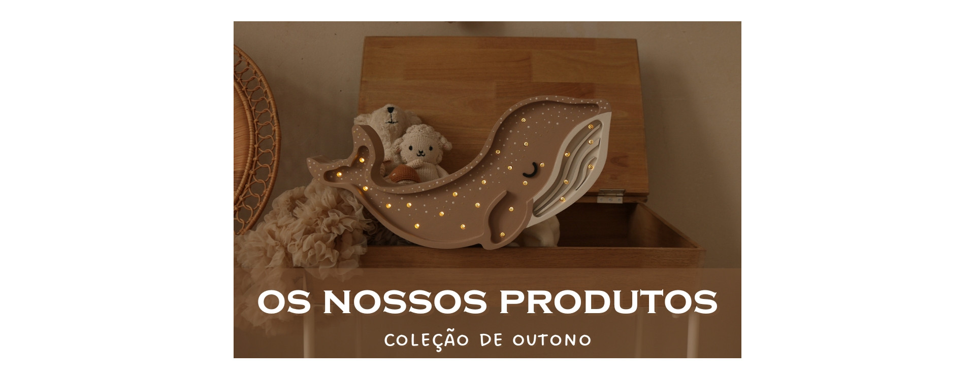Para acentuar a decoração, as nossas almofadas em forma de folhas ou as nossas guirlandas luminosas criam uma atmosfera suave e divertida. Os cestos de arrumação em tecido ou em crochet, práticos e estéticos, permitem guardar brinquedos e acessórios, mantendo ao mesmo tempo um toque decorativo.