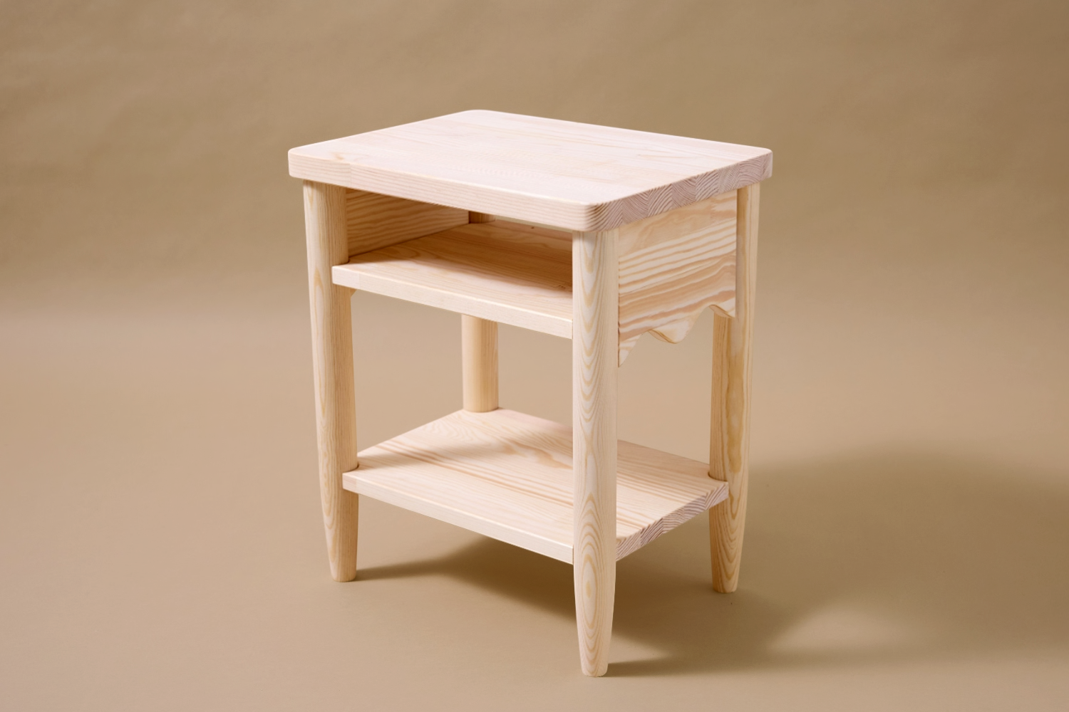 Traga elegância e praticidade ao quarto da criança com a mesa de cabeceira Ondulada em madeira. O seu design ondulado único transforma um móvel funcional numa verdadeira peça decorativa.