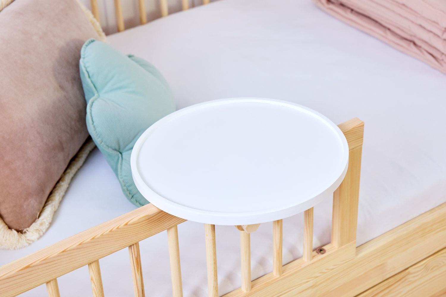 Concebida com elegância para ser facilmente fixada às barreiras da cama, esta prateleira é o complemento perfeito para guardar os livros de cabeceira preferidos dos seus filhos ou os seus brinquedos de peluche, mantendo a estética elegante do seu quarto.