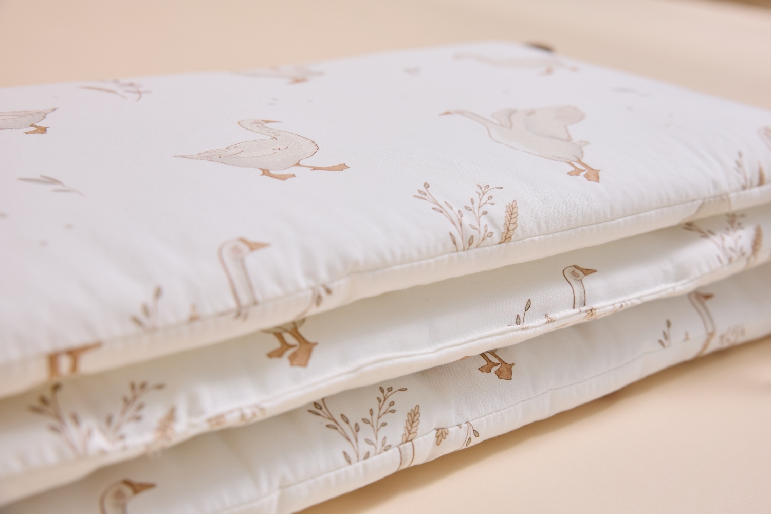 Os protetores de berço são confeccionados em 100 % algodão, tecido penteado com gramagem de 150 g/m². É um material macio, delicado para a pele sensível do bebê, mas também durável e resistente ao uso diário.